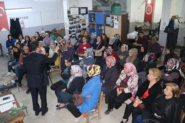 İŞKUR, Gaziantep Bakırcılar ve Sedefçiler Odası ve Gaziantep Büyükşehir Belediyesi Zabıta Daire Başkanlığının ortaklığında bakırcı kadınlara çağımızın Psikolojik sorunları anlatıldı.