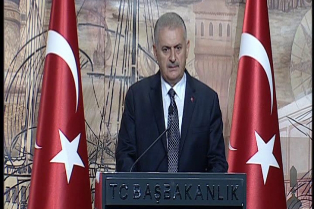 Konuşmasının başında bu sabah Şırnak'ın Cizre İlçesi'nde gerçekleşen terör saldırısına değinen Başbakan Yıldırım, "Bu sabah erken saatlerde Cizre polis merkezine alçak PKK terör örgütünün kalleş saldırısı sonucu hayatını kaybeden 11 şehidimiz, polis kardeşimiz var. Şehitlerimize Allah'tan rahmet diliyorum. Yaralılarımız var, çok sayıda, tedavi altında, onlara da acil şifalar diliyorum. Terör örgütü ne yaparsa yapsın, canımız yakabilir, şehitlerimiz olabilir acımız büyük; ancak şehitlerimizi bağrımıza basacağız; kalleş terör örgütünü sevindirmeyeceğiz. Hiçbir terör örgütü Türkiye Cumhuriyeti'ni esir alamaz. Bildiklerini arkalarına koymasınlar. Milletimiz şunu anlasın ve bilsin ki; bu terör örgütlerinin tümüne topyekün savaş açtık. Kurtuluş Savaşı'nda Gazi Mustafa Kemal Atatürk'ün dediği gibi; 'Ya istiklal, ya ölüm'. Ve 79 milyonun kardeşliğine, birliğine, beraberliğine kasteden bu alçaklara her türlü hakkettikleri cevabı vereceğiz" dedi.