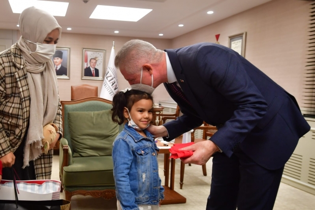 Gaziantep’te bayrak sevgisi güvenlik kamerasına yansıyan 5 yaşındaki Bahar Kılıç’ı Gaziantep Valisi Davut Gül makamında ağırladı. Yürekleri ısıtan görüntüsüyle Türkiye’nin gündemine oturan Kılıç’ı, Vali Davut Gül alnından öperek karşıladı.