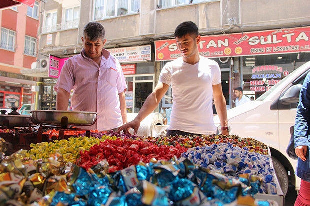Gaziantep'te Ramazan Bayramına sayılı günler kala şekerler de tezgahları doldurdu. Şekerlemeciler, tezgahlardaki birbirinden farklı renk ve tattaki bayram şekerleri alımı konusunda çeşitli uyarılarda bulundu. Günlük alınacak şekerin suyla tüketilmesi gerektiğini söyleyen şekerlemeciler, şekerin fazla tüketildiğinde zararlı olabileceğini hatırlattı. Fiyatların geçen seneden biraz daha fazla olduğunu vurgulayan şekerlemeci Metin Özmezarcı, “Fiyatlarımız geçen seneden çok fazla değildir. Geçen sene kilosunu 11 TL’den sattığımız bazı şekerlerin, bu sene 11.5 TL’ye satıyoruz. Bunun anlamı geçen sene ile bu sene arasında küçük bir fark var. Fiyatlar bu senede gayet uygundur” dedi.