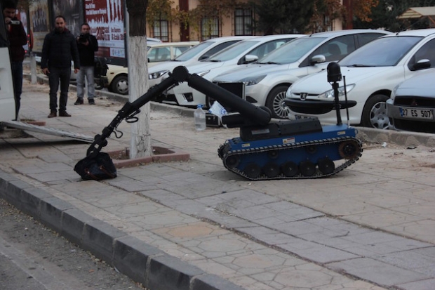 Edinilen bilgiye göre, Gaziantep Büyükşehir Belediyesi önünde, kimliği belirsiz kişiler tarafından, bırakılan çanta paniğe neden oldu. Çevredeki vatandaşların polis ekiplerine haber vermesi üzerine olay yerine gelen polis ekipleri, geniş güvenlik önlemleri aldı. Robotla müdahale edilen çanta, kontrollü bir şekilde patlatıldı.