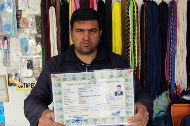Gaziantep Sayacılar Esnaf ve Sanatkarlar Odası açtığı kursa gidip, sınavda başarılı olan 14 ayakkabı boyacısı ve tamircisine 'Ustalık Belgesi' verdi.
