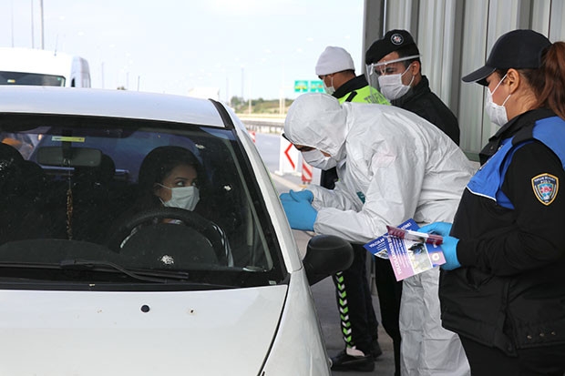 Uygulama noktasında bütün araçları tek tek durduran ekipler, vatandaşlara zorunlu olmadıkça seyahate çıkmamaları konusunda uyarılarda bulunup ‘Evinde kal, sevdiklerinle kal. Bana bir şey olmaz deme’ yazılı broşürleri verdi.