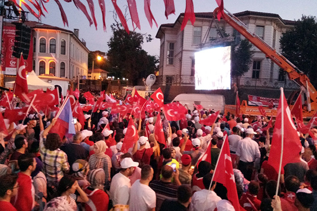 15 Temmuz Şehitler Köprüsü’ne gidemeyen binlerce vatandaş, Üsküdar Kısıklı’da nöbet tutup, kurulan ekranda Cumhurbaşkanı Recep Tayyip Erdoğan’ın konuşmasını izledi. Şehitlerin isimleri okunurken, vatandaşlar hep bir ağızdan “burada” diye bağırdı.