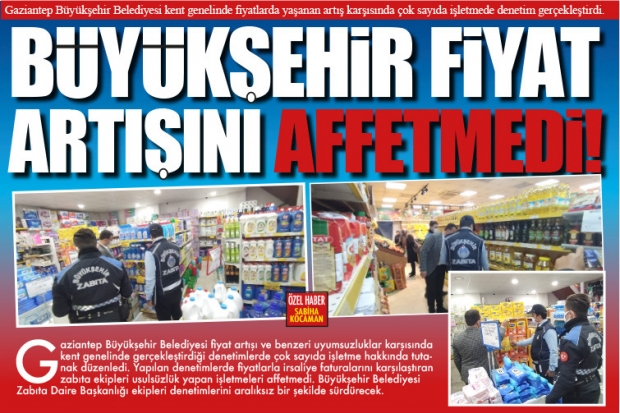 Gaziantep Büyükşehir Belediyesi fiyat artışı ve benzeri uyumsuzluklar karşısında kent genelinde gerçekleştirdiği denetimlerde çok sayıda işletme hakkında tutanak düzenledi. Yapılan denetimlerde fiyatlarla irsaliye faturalarını karşılaştıran zabıta ekipleri usulsüzlük yapan işletmeleri affetmedi. Büyükşehir Belediyesi Zabıta Daire Başkanlığı ekipleri denetimlerini aralıksız bir şekilde sürdürecek.