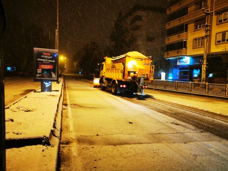 Kentin muhtelif bölgelerinde 24 saat hizmet veren karla mücadele ekipleri, ana cadde ve yolların yanı sıra kaza riski taşıyan eğilimli bölgelerde, merkeze uzak kırsal mahallelerde de karla mücadele ve tuzlama çalışması yürütüyor.