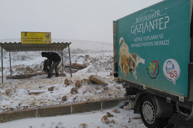 Gaziantep Büyükşehir Belediyesi, sokak hayvanlarının kötü hava koşullarında yemek ihtiyacını karşılamak için çalışmalara başladı.