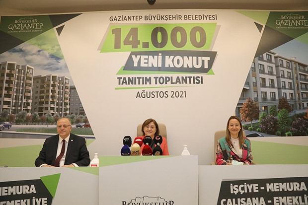 Gaziantep Büyükşehir Belediyesi “14 Bin Konut Projesi Tanıtım Toplantısı” Büyükşehir Belediye Başkanı Fatma Şahin, AK Parti Gaziantep Milletvekilleri Derya Bakbak ve Nejat Koçer, meclis üyeleri ve basın mensuplarının katılımıyla gerçekleştirildi. Proje kapsamında Gaziantep Büyükşehir Belediyesi, TOKİ ve Özel Sektör işbirliği ile Kuzeyşehir’de 10 bin 400, Güneyşehir 2 bin 850 ve Kızılhisar bölgesinde 750 adet olmak üzere toplam 14 bin yeni konut yapılacak.