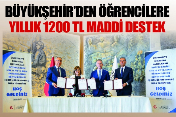 Gaziantep Büyükşehir Belediyesi’nin üniversite sınavına hazırlanan ihtiyaç sahibi 11 ve 12’nci sınıf öğrencilerine yapacağı yıllık 1.200 TL maddi yardım için geçtiğimiz Cuma günü protokol imzalandı.