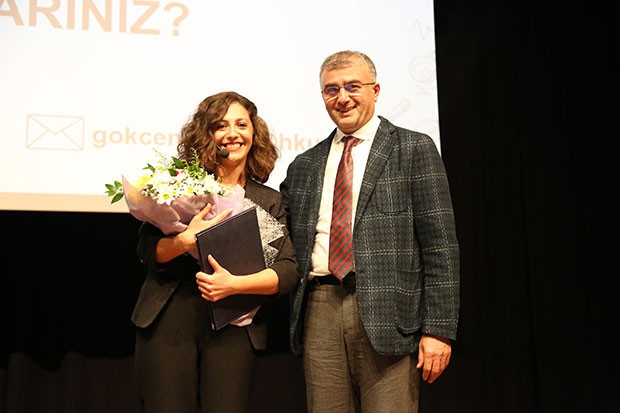 Soru-cevap şeklinde devam eden program sonunda HKÜ Rektör Yardımcısı Prof. Dr. Yaşar Özbay, Yrd. Doç. Dr. Gökçen Aydın’a teşekkür belgesi ve çiçek takdim etti.