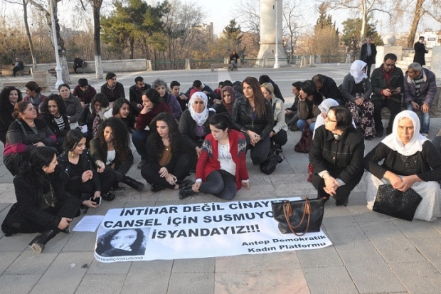 Gaziantep’te, Demokratik Kadın Platformu üyeleri, Kayseri’de matematik öğretmeni tarafından tecavüze uğradıktan sonra intihar eden Cansel Buse Kınalı için eylem yaptı.