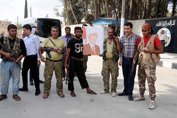 Cerablus'un ilçe merkezinde ÖSO tarafından karargah olarak kullanılan bina ile Cerablus Halk Meclisi'nin girişinde Cumhurbaşkanı Recep Tayyip Erdoğan posterleri asıldığı görüldü. Yine ilçe merkezinde dolaşan bir çok Suriyeli'nin de elinde Cumhurbaşkanı Erdoğan posterleri ve Türk bayrakları taşıdıkları görüldü. Bu arada IŞİD'in kontrolünü sağlarken Cerablus sokaklarındaki duvarlara çizdikleri yazı ve amblemler de dikkat çekti.