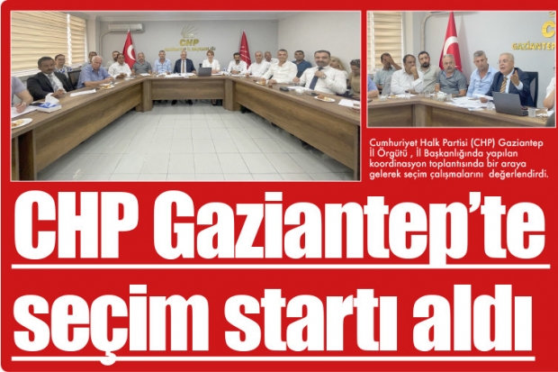 Cumhuriyet Halk Partisi (CHP) Gaziantep İl Örgütü , İl Başkanlığında yapılan koordinasyon toplantısında bir araya gelerek seçim çalışmalarını değerlendirdi. İl Başkanı Neşet Uçar'ın açılış konuşması ve son 6 aylık süreçte yapılan çalışmaların değerlendirmeleri ile başlayan toplantıya, Şahinbey İlçe Başkanı Av. Mehmet Aydın Şahin, Şehitkamil İlçe Başkanı Av. Yunus Emre Özmen Nizip İlçe Başkanı Mehmet Bozfırat, Oğuzeli İlçe Başkanı Mustafa Dinçkan, Karkamış İlçe Başkanı Metin Göğebakan, Araban İlçe Başkanı Hüseyin Kılınç, İslahiye İlçe Başkanı Mustafa Köse, Yavuzeli İlçe Başkanı Seydi Vakkas Dağlı, Nurdağı ilçe başkanı Fatih Dinç ve yönetim kurulu üyeleri katıldı.