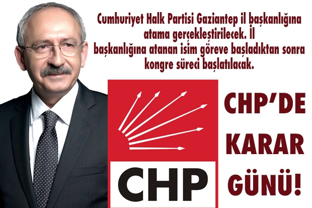 Cumhuriyet Halk Partisi Gaziantep il başkanlığına atanacak isim Pazartesi günü belli oluyor. İl başkanlığına atanacak isim zaman kaybetmeden kongre sürecini başlatacak. CHP’de uzun süren belirsizliğin ardından atamaya imza atacak olan CHP Genel Başkanı Kemal Kılıçdaroğlu, ay sonunda Gaziantep’e gelerek incelemelerde bulunacak.