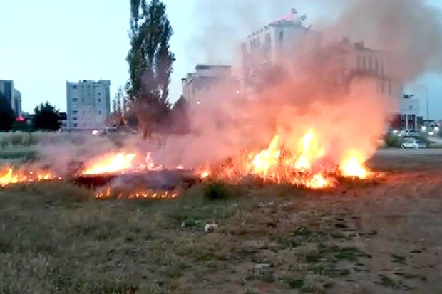 Boş bir arazide çıkan yangın paniğe neden oldu.