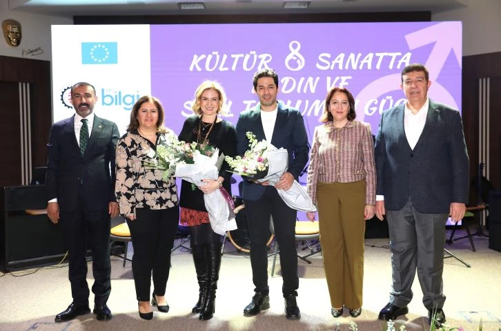 Kültür ve sanatta toplumsal cinsiyet eşitliği üzerine gerçekleşen söyleşide Oyuncu Ceyda Düvenci ise manevi ve fiziksel şiddete dikkat çekerek “Hayatınızda hiç kimsenin size manevi ya da bedensel şiddet uygulamasına izin vermeyin. Hiç kimse size kelimeleriyle de bedeniyle de zarar veremez. Önce cümlelerimizi, sonra sinirimizi kustuğumuz kelimelerimizi, sonra da gerçek sevginin içinde herhangi bir şiddet olmadığını önce kendimize sonra evlatlarımıza hatırlatırsak bir sene sonra bile farklı şeyler konuşuyor olacağız.” şeklinde konuştu.
