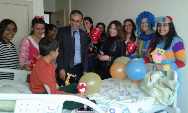 Yüksekokul Müdürü Yrd. Doç. Dr. Metin Yıldırım, Öğr. Gör. Pınar Gün, Öğr. Gör. Müjde Akgül ile birlikte Çocuk Gelişimi programı 2.sınıf öğrencileri tarafından gerçekleştirilen ziyarette, çocuk hastalara moral verildi ve eğlenmeleri sağlandı. Çocukların sevdiği oyun kahramanları kostümleriyle çocuklara sürpriz yapan ve kendi yaptıkları oyuncakları çocuklarla paylaşan öğrenciler, duygulu anlar yaşadı. Türk Bayrağı, balon ve çeşitli hediyeleri minik hastalara sunan öğrenciler, Çocuk Sağlığı ve Hastalıkları dersi kapsamında takdir toplarlarken, ziyaret hasta yakınları tarafından memnuniyetle karşılandı. Hastane Müdürü Yemliha Yanar ve Pediatri Kliniği doktor ve hemşireleri ziyaretten duyulan memnuniyeti dile getirerek, bu tür ziyaretlerin sık olması temennisinde bulundu.