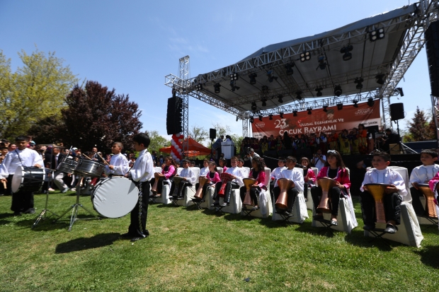 Gazi Mustafa Kemal Atatürk tarafından geleceğin mimarı çocuklara armağan edilen özel gün, hazırlanan özel performanslarla kutlandı. Öğrenciler ve sınıf öğretmenlerinden oluşan koro, şenlikte bayram şarkılarını hep beraber söyledi. Koro, "Memleketim" şarkısını seslendirirken sahneye çıkan Başkan Fatma Şahin, çocuk korosuna eşlik etti.