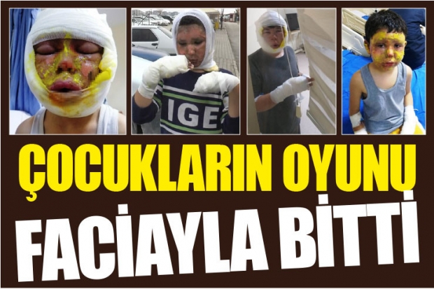 Gaziantep’te 4 çocuğun mazot dolu tenekeyle oynadığı oyun faciayla sonuçlandı. Teneke çocukların içine soktukları kağıt parçasını ateşe vermesiyle bomba gibi patlarken ölümden dönen 4 arkadaş feci şekilde yandı. Oğlunun tanınmayacak hala geldiğini söyleyen baba Faraç İsabaş, alevlerin metrelerce yükseldiğini aktardı.