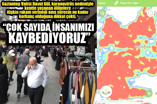 Gaziantep Valisi Davut Gül, koronavirüsün ilk görüldüğü Mart ayından bu yana ilk kez bugün yaşanan tabloya ilişkin korkutan açıklamayı yaptı. Çok sayıda insanın koronavirüs nedeniyle yaşamını yitirdiğini dile getiren Vali Gül, “Gaziantep geneli covid-19 açısından yüksek risk barındırmaktadır. Hastalığın önemli bir sebebi de akraba ve arkadaş buluşmalarıdır. 60 yaş üzeri başta olmak üzere her yaştan, çok sayıda insanımızı kaybediyoruz. Lütfen kurallara riayet edip kimseye gidip gelmeyelim” diye konuştu. Vali Gül’ün sosyal medyasında yayınlanan bu açıklamaya rağmen bugün gün içerisinde kent genelinde kurallara uyma oranının yine düşük seviyede olduğu gözlendi.