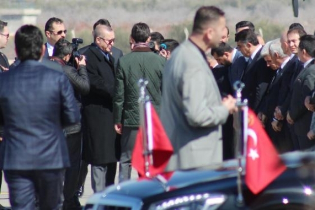 Cumhurbaşkanı Erdoğan, beraberindekilerle birlikte 'Ana' uçağıyla öğle saatlerinde Gaziantep'e geldi. Cumhurbaşkanı Erdoğan, Gaziantep Havalimanı'nda Başbakan Yardımcıları Mehmet Şimşek ile Veysi Kaynak, Gıda Tarım ve Hayvancılık Bakanı Faruk Çelik, Vali Ali Yerlikaya, Ak Parti Genel Sekreteri Abdulhamit Gül, milletvekilleri, Büyükşehir Belediye Başkanı Fatma Şahin ve kent protokolü tarafından karşılandı.