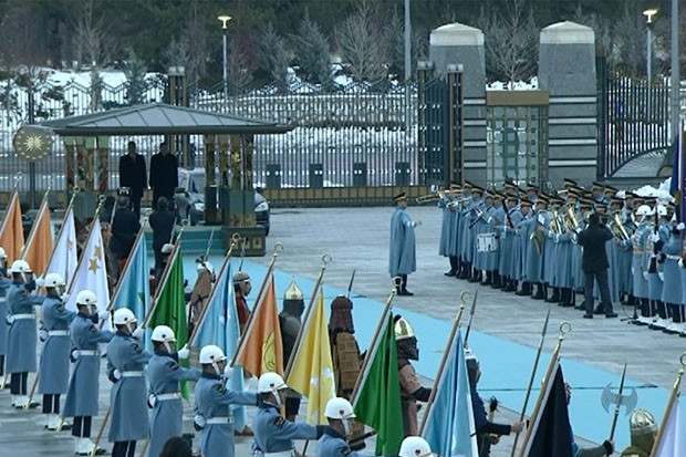 Erdoğan, konuk Cumhurbaşkanı Taçi’yi Cumhurbaşkanlığı Külliyesi girişinde karşıladı. Her iki ülkenin milli marşlarının çalınmasıyla resmi tören başladı. Taçi, tören kıtasını Türkçe “Merhaba asker” diyerek selamladıktan sonra Cumhurbaşkanı Erdoğan resmi törene katılan Milli Eğitim Bakanı İsmet Yılmaz, Cumhurbaşkanlığı Genel Sekreteri Fahri Kasırga, Cumhurbaşkanlığı Sözcüsü İbrahim Kalın ile bürokratları tanıttı. Tören, Erdoğan ve Taçi’nin gazetecilere poz vermesiyle sona erdi.