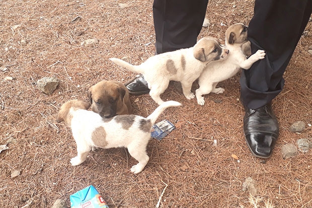 Gaziantep Hayvanları Koruma Temsilcisi tarafından alınan yavru köpekler, İslahiye'deki köpek barınağına götürüldü.