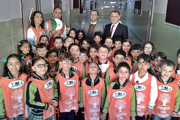 Gaziantep Şahinbey Dayı Ahmet Ağa İlkokulu öğrencileri farkındalıklarını ortaya koyarak :Biz de TEMA üyesiyiz siz daha olmadınız mı, mesajı verdiler.