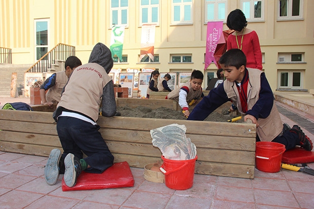 Köroğlu, 4 farklı kum havuzunda öğrencilere uygulamalı arkeolojik kazı dersi verildiğini söyledi. Kumların içerisinde yerleştirilen eserlerin öğrenciler tarafından büyük bir titizlikle çıkartıldığını aktaran Köroğlu, "Öğrencilerin buldukları eserleri bir sonraki aşama olan atölye çalışmasında boyamasını ve kil çamurdan benzerlerini yapmayı öğretiyoruz. Amacımız çocuklara kültürel miras ve tarihi eserlere sahip çıkılıp korunmasını öğretiyoruz" ifadelerini kullandı.