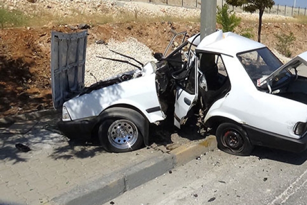 Gaziantep'te kontrolden çıktıktan sonra yol kenarındaki aydınlatma direğine çarpan otomobil kağıt gibi ikiye katlandı. Dünkü kazada otomobil tamamen ikiye ayrılırken, bugünkü kazada ise aynı marka otomobil, kağıt gibi ikiye katlandı.