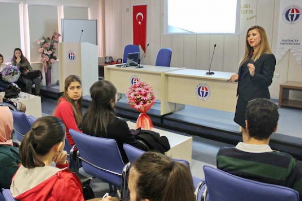 Gaziantep Üniversitesi (GAÜN) Toplumsal Duyarlılık Projeleri (TDP) Merkezi Proje Uzmanlarından İpek Tezel tarafından “Dış Ticarette Riskler” konferansı GAÜN Sosyal Bilimler Meslek Yüksekokulu Konferans Salonunda gerçekleşti.