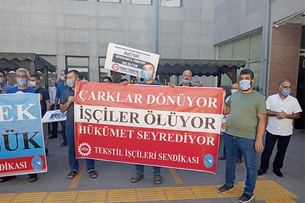 DİSK Tekstil Bölge Temsilciliği, Gaziantep OSB’de bulunan yetkili oldukları Güven Boya fabrikası yönetiminin, sendika karşı tutumu, ve işçiler üzerinde kurduğu baskıya yönelik suç duyurusunda bulundu. Suç duyurusunda bulunmadan önce Gaziantep Adliyesi önünde basın açıklaması yapan DİSK Tekstil, Güven Boya fabrikası yönetiminin, işçilerin sendikaya üye olmamaları için, e- devlet şifrelerinin alındığını, işçilere aileleri üzerinden baskı kurulduğunu söyledi. DİSK Tekstil Bölge Temsilcisi Mehmet Türkmen’in okuduğu açıklamaya Genel İş, KESK, EMEP, HDP, TİP, TKH, Emek Gençliği ve CHP Gençlik Kolları da katıldı.