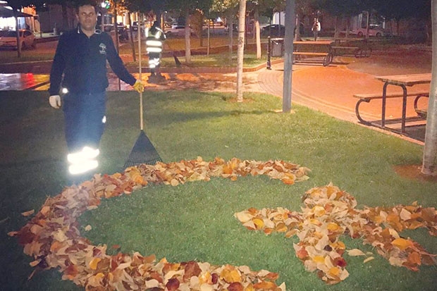Şehitkamil İlçesinde ilçe belediyesine bağlı Temizlik İşleri Müdürlüğü ekiplerinin ağaçların döktüğü yapraklara yönelik temizlik çalışmaları devam ediyor. Devam eden temizlik çalışmalarında belediyede görevli temizlik işçisi topladığı yapraklardan ay yıldız çizdi. Temizlik işçisinin bu tavrı sosyal paylaşım sitelerinde rekor kırdı. Diğer yandan Şehitkamil ilçesinde yer alan parklarda havaların soğumasıyla birlikte kartpostallık görüntüler ortaya çıktı.