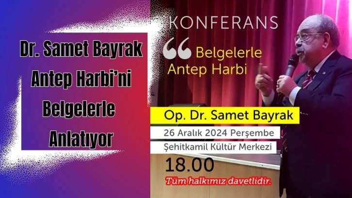 Op. Dr. Samet Bayrak, Antep Harbi’ne dair belgeleri ve bu kahramanlık destanının bilinmeyen yönlerini katılımcılarla paylaşacak. Gaziantep’in tarihine ışık tutacak bu anlamlı etkinlik, herkese açık ve ücretsiz olacak.