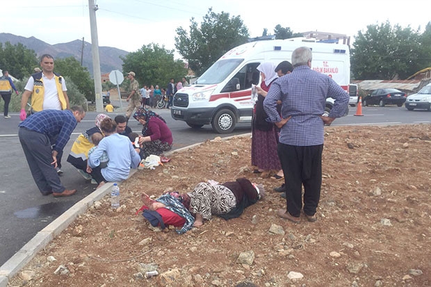 Hassa yönüne giden Nihat Yılmaz (41) yönetimindeki yabancı plakalı otomobil ile karşı yönden gelen Yalçın Erdağ'ın (27) kullandığı 33 AK 944 plakalı otomobil çarpıştı. Kazada sürücüler ile araçlarda bulunan Abidin Erdağ (56), Meryem Zurnacı (80) Nazlı Erdağ (57), Zeynep Kartal (22), Mahmut Can Erdağ (3) ve Hevin Musa (20) yaralandı. Yaralılar, çevredekilerin ihbarı üzerine olay yerine gelen sağlık görevlileri tarafından ambulanslarla İslahiye Devlet Hastanesi'ne götürüldü. Acil serviste ilk müdahalesi yapılan yaralılardan durumu ağır olan Zeynep Zurnacı Gaziantep'e sevk edildi. Kazayla ilgili soruşturma başlatıldı.