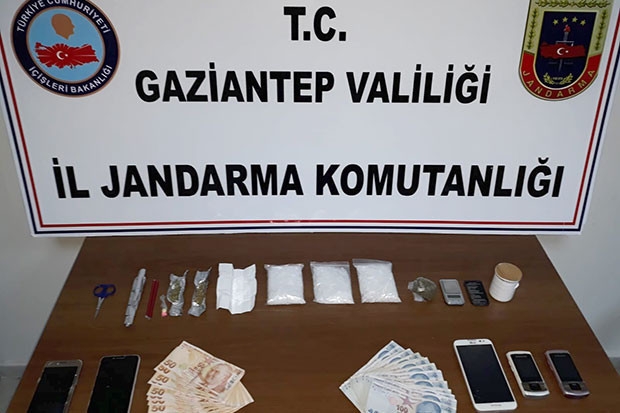 Edinilen bilgiye göre Gaziantep'in Beştepe Mahallesi'nde, Şahinbey İlçe Jandarma ekiplerinin dur ihtarına uymayarak kaçan edec İl Jandarma Komutanlığı ekiplerinin de desteğiyle kısa sürede yakalandı. Kovalamaca sonucu yakalanan araçta ekipler, 180 gram metamfatamin maddesi, 30 gram esrar, 10 gram kokain, çok sayıda extacy hap, uyuşturucu ticaretinde kullanılan bir miktar para ve bir adet ruhsatsız tabanca ele geçirdi.