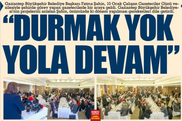 10 Ocak Çalışan Gazeteciler Günü dolayısıyla basın mensuplarıyla bir araya gelen Gaziantep Büyükşehir Belediye Başkanı Fatma Şahin, medya sektörünün önemli, sorumlulukları ve kentin sorunlarında ortak hareket edilmesi için birlik mesajını verdi. Toplantında Başkan Fatma Şahin, sektör temsilcilerinin gelişen teknolojiye ayak uydurması için eğitim başta olmak üzere destek vermeye hazır olduklarını söyledi.