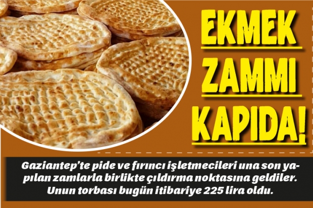 Una yapılan son zamlar ve doğalgaza son gelen yüzde 48 zammın ardından pide ve francala ekmeği üreten esnaflar isyan etme noktasına geldi. Unun torbası haberin hazırlandığı sıralarda 225 lira olarak açıklandı. Fiyatların ilerleyen günler hatta saattlerde de artacağı ifade ediliyor. Gaziantep Pideciler, Simitçiler ve Yufkacılar Odası Başkanı Abdullah Sarı, girdilere üst üste yapılan zamların ardından bugün pide ekmeğinin 2, francala ekmeğinin ise 2 lira 50 kuruştan satılması gerektiğini ifade etti.