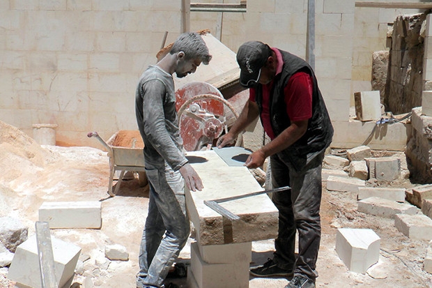 Tarihi eserlerin restorasyon çalışmalarında kullanılan doğal beyaz taşlara şekil verilmesinde büyük emek harcayan taş işçileri Ramazanda sıcak havanın da etkisiyle ağır koşullarda çalışıyor. Gaziantep’te sıcaklığın 30 derecenin altına inmediği bugünlerde taş işçileri binaların restorasyon çalışmalarını büyük bir titizlikle sürdürüyor. Ellerindeki 5'er kiloluk çekiçlerle taşlara şekil veren taş işçileri sıcak havaya rağmen ekmeğini resmen taştan çıkarıyor.