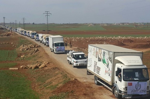 Türk Silahlı Kuvvetleri'nin Özgür Suriye Ordusu ile birlikte yapılan operasyonla, terör örgütü DEAŞ'in elinden alınan Suriye'nin Halep kentine bağlı El Bab kasabasına ilk yardım konvoyu ulaştırıldı. El yapımı patlayıcı ve mayın tuzaklarının temizleme çalışmalarının sürdüğü kente, İnsan Hak ve Hürriyetleri (İHH) İnsani Yardım Vakfı tarafından hazırlanan 25 tır insani yardım malzemesi gönderilmişti. İçerisinde gıda, battaniye ve temizlik malzemesi bulunan araçlar El Bab'a ulaştırıldı. İHH gönüllüleri tarafından yardım malzemeleri Suriyeli ihtiyaç sahiplerine teslim edilmeye başlandı. Yardımlarla ilgili bilgi veren İHH Suriye Koordinatörü Serkan Öktem, daha önce Cerablus ve Çobanbey’de yaptıkları yardımların aynısını bu kez El-Bab halkına ulaştırdıklarını belirterek, “Biz Bab halkının şu anda zor şartlarda bir hayat sürdüklerinin farkındayız. Hem burada yaşayanlar hem de daha önce memleketlerini terk etmek zorunda kalan ancak bugün geri dönenlere yardımlarımız devam edecek. Şu anda buraya getirdiğimiz yardım tırların içinde gıda, sünger, battaniye, temizlik kolisi, mutfak seti, bebek paketi, ekmek ve un bulunuyor. Bugün bunları acil ihtiyaç sahiplerine ulaştırıyoruz. İHH olarak bugünden sonra Bab halkı için daha fazla proje üretmek için çalışıyoruz. Bu dağıtımlarımız ilerleyen gönlerde devam edecek” dedi.