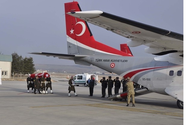 Şehitlerin Türk bayraklarına sarılı tabutları, askerlerin omuzlarından Türk Hava Kuvvetleri'ne ait uçağa taşındı. Şehit üsteğmen Tarık Koçoğlu Kayseri'ye, astsubay üstçavuş Yahya Efiloğlu İzmir'in Karabağlar İlçesi'ne, uzman çavuş Gökhan Kılıç Adana'nın Yüreğir İlçesi'ne, uzman çavuş Mahmut Uslu Ankara'ya ve uzman onbaşı Umut Aytekin'in cenazesi Karabük'e gönderildi.