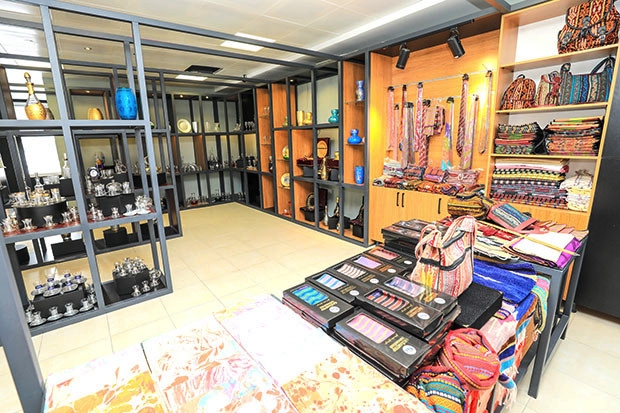 Naci Topçuoğlu Meslek Yüksekokulu Müdürü Prof. Dr. Hüseyin Bozkurt, Yüksekokulda üretilen ayakkabı modellerinin, kutnudan imal edilen fular, kravat ve çeşitli süs ürünleri ile beraber, cam işleme atölyesinde üretilen, geleneksel ve modern motiflere sahip dekoratif çalışmaların kampüs içerisinde bulunan mağazada satışa sunulduğunu belirtti.