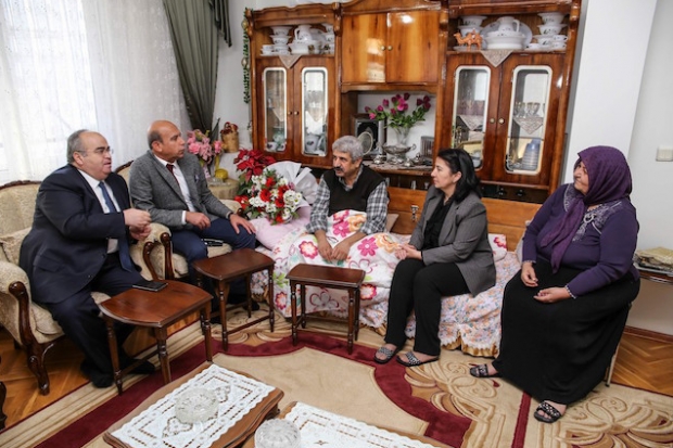 AK Parti Şehitkamil ilçe Kadın Kolları üyesi kadınlar, 24 Kasım Öğretmenler Günü nedeniyle emekli hasta öğretmen Ali Benlier'i evinde ziyaret etti. Her yıl 24 Kasım Öğretmenler Günü nedeniyle düzenlenen ziyaretler kapsamında bu yıl rahatsızlığı nedeniyle bir süre önce ameliyat olan emekli öğretmen Benlier'i ziyaret eden Ak Partili kadınlar, Benlier'e çiçek vererek Öğretmenler Günü'nü kutladı.