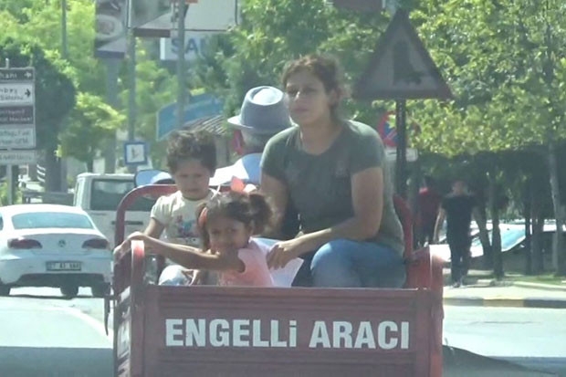 Gaziantep Sani Konukoğlu Bulvarı Adliye yönünden şehir merkezine doğru hareket eden sepetli bir engelli motosikletine hiçbir güvenlik tedbiri almadan binen dört kişi dikkat çekti. Önde motosikleti kullanan engelli bir adam ve arkada biri kadın, ikisi çocuk 3 kişinin olduğu engelli aracı trafiğin yoğun olduğu caddede ilerlerken çocukların araçta sabit durmakta güçlük yaşadı.