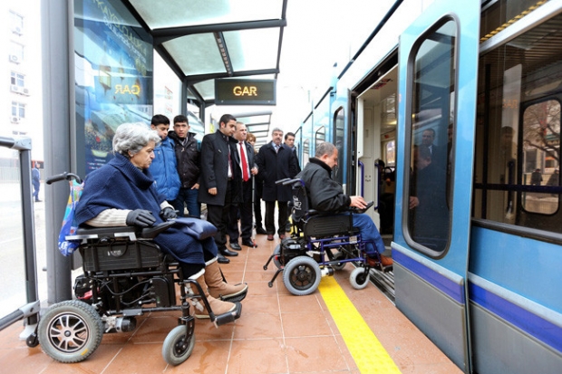 Bu kapsamda düzenlenen mavi tramvaylar engelilerin binebileceği şekilde tasarlandı. Kısa süre önce test sürüşlerine çıkan tramvaylar, yolcu taşımaya başladı.