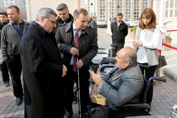 Konuşmaların ardından engellilere, beyaz baston, tekerlekli sandalye ve sesli kol saati dağıtıldı. Öte yandan törenin ardından Çelebi ve ekibi, iki aileyi evlerinde ziyaret ederek engelli çocuklarına tekerlekli sandalye verdi.