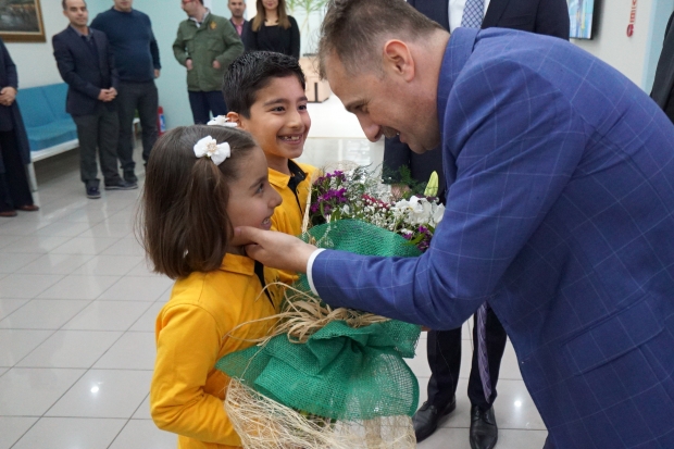 Ziyaretin ardından Erdem Koleji Genel Müdürü Mehmet Örfi Sönmez misafirlere plaket takdiminde bulundu.