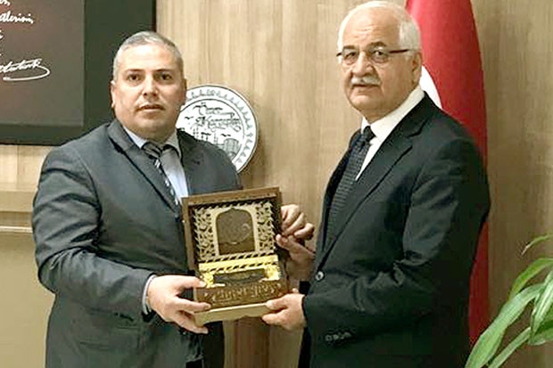 Araban İlçe Milli Eğitim Müdürü Ömer Karayılan, Ak Parti Gaziantep Milletvekili Mehmet Erdoğan'a Kur'an-ı Kerim hediye etti.