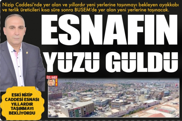 Gaziantep Büyükşehir Belediyesi tarafından yeniz Nizip Yolu üzerinde kurulan BUSEM esnafın yüzünü güldürdü. Kent merkezinde yer alan çok sayıda esnaf gurubu yeni ticaret merkezinde işlerini sürdürecek. Bu kapsamda eski Nizip Caddesinde yer alan yerlik ve ayakkabı sektör temsilcileri kendileri için yapılacak olan işyerlerine taşınacak. Yapılan arsa ihalesini kazanan Mehmet Sarıbal, işyerlerinin kısa süre içerisinde yapılacağını açıkladı.