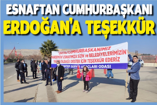 Gaziantep'in Düşmman İşgalinden Kurtuluşunun 100. Yıldönümü nedeniyle kente gelen Cumhur başkanı Recep Tayyip Erdoğan'a esnaftan teşekkür geldi. Gaziantepli servisçi esnafı pandemi döneminde merkezi yönetim ile yerel yönetimler tarafından yapılan yardımlara teşekkür ettiler.